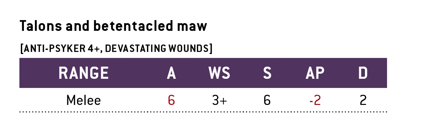 Change to: ‘Each time a TYRANIDS MONSTER model from your army makes an attack, add 1 to the Hit roll if that model’s unit is below its Starting Strength, and add 1 to the Wound roll as well if that model’s unit is Below Half-strength. In addition, while a TYRANIDS MONSTER unit from your army (excluding Battle-shocked units) is at its Starting Strength, add 2 to the Objective Control characteristic of models in that unit.’